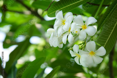 © Tonanakan, Fototapeta premium White plumeria in tropical garden