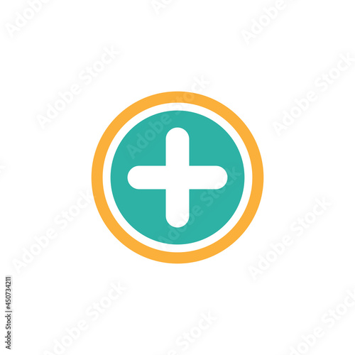 Fototapeta premium white plus in blue circle. Flat vector icon isolated on white. Add or plus...