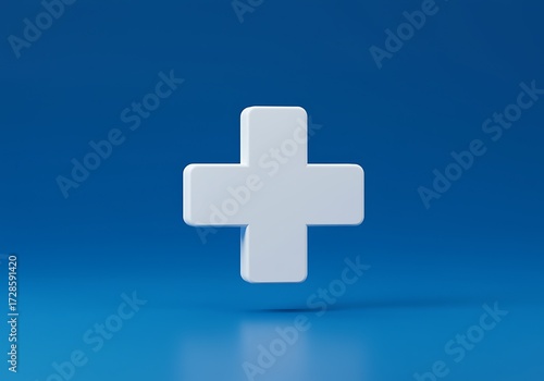 © Bhuiyan, Fototapeta premium White Plus Sign 3D Render Isolated on Blue Background Symbolizing Addition Medical Care and Positive Concepts for Design Projects and Visualizations