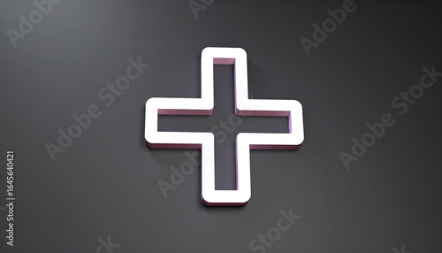 © aristha, Obraz premium White plus sign icon on a dark gray background.