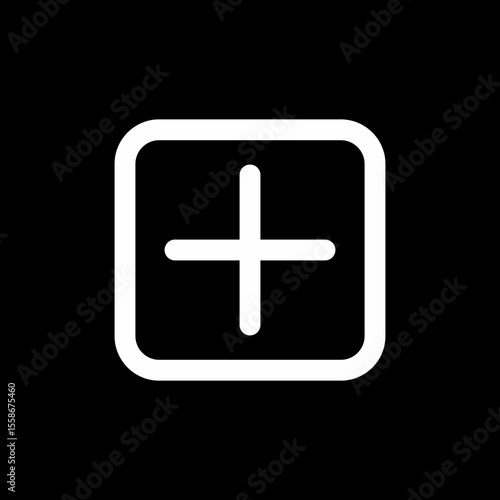Obraz premium White Plus Sign in Square Icon Add, Plus, Symbol, Button, Interface