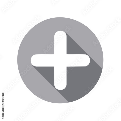 Obraz premium White plus sign inside a gray circle with a shadow effect