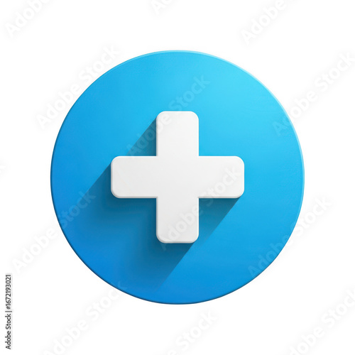 Obraz premium White plus sign on blue circle isolated on transparent background