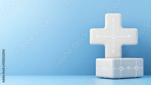 Fototapeta premium White Plus Symbol on Light Blue Background