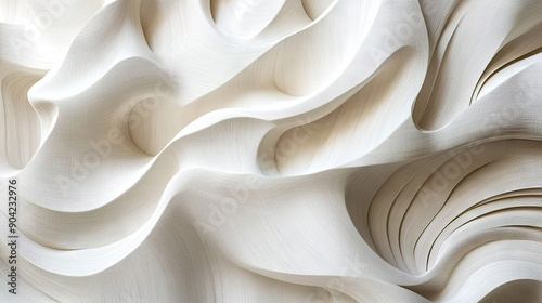 © Jabrix, Fototapeta premium White Plywood 3D Wall Art with Wavy Contour Pattern