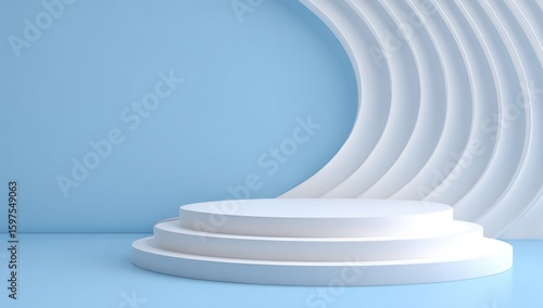 © Neni, Obraz premium White podium on light blue background with abstract curves