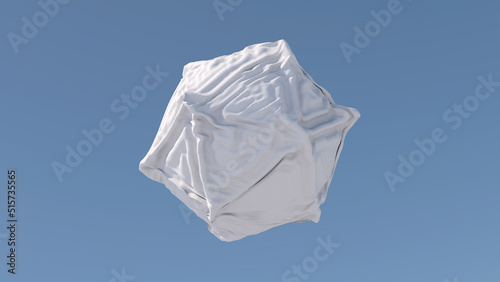 Obraz premium White polyhedron, cloth effect. Blue background. Abstract illustration, 3d render.