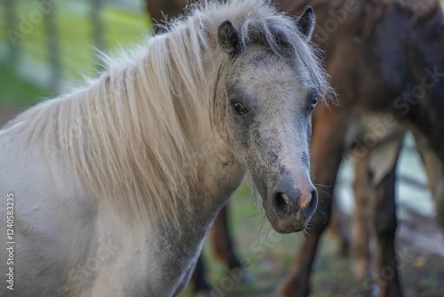 © Wirestock, Obraz premium White pony close-up.