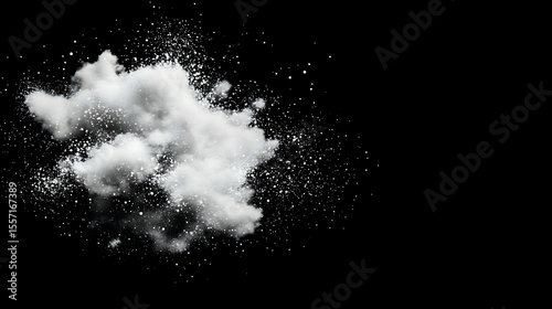 © abid, Obraz premium White powder explosion, black background, studio shot, design element