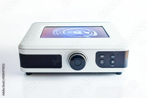 © jambulart, Fototapeta premium White projector with a blue swirling screen.