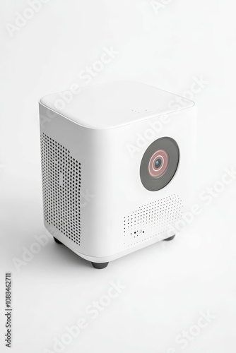 Fototapeta premium White projector with a lens and speaker holes.
