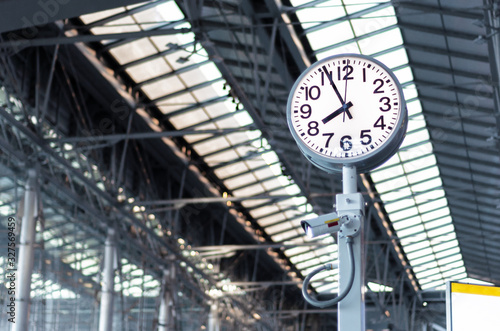 © Teerasak, Obraz premium White Public Clock and CCTV Camera