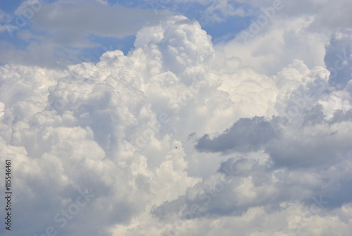 © mariel887, Naklejka premium White puffy clouds in the sky.