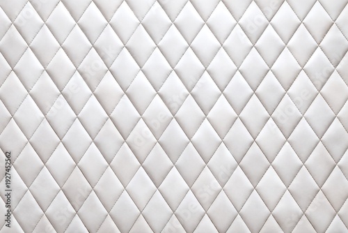 © Stephen, Fototapeta premium White Quilted Leather Texture Background with Elegant Diamond Pattern - Luxury Padded Upholstery for Furniture, Interior Design and Minimalist Wall Panel Surface