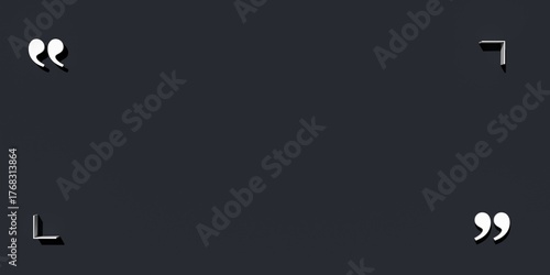 Naklejka premium White quotation marks with thin line corners on dark background, quote template with copy space