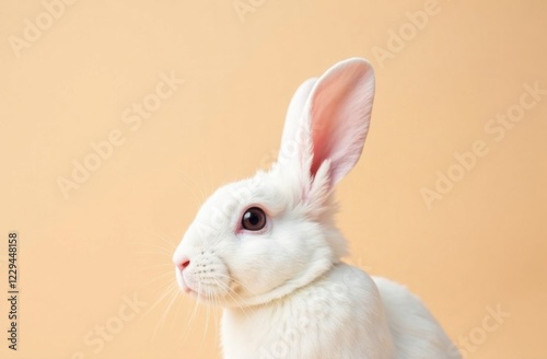 © Виктория Кадырова, Obraz premium White rabbit ear on pastel beige background. Easter day