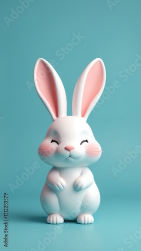 © Giuseppe Cammino, Obraz premium White rabbit ear on pastel blue background. Easter day. 3d rendering