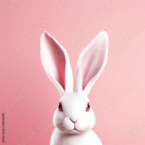 © Richa, Obraz premium White rabbit ear on pastel pink background. Easter day. 3d rendering, Generative AI