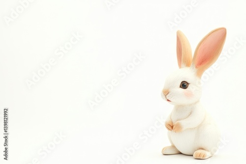 © paulus, Obraz premium White rabbit figurine standing against white background, suitable for Easter, spring concepts