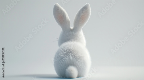 © Vilma, Fototapeta premium white rabbit from the back, fluffy bunny tail, easter white background