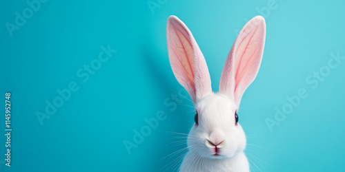 © Tatiana, Obraz premium White rabbit in blue background. Generated AI