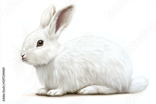 © Space Priest, Fototapeta premium White rabbit is sitting on a white background