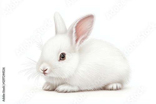 © Space Priest, Obraz premium White rabbit is sitting on a white background