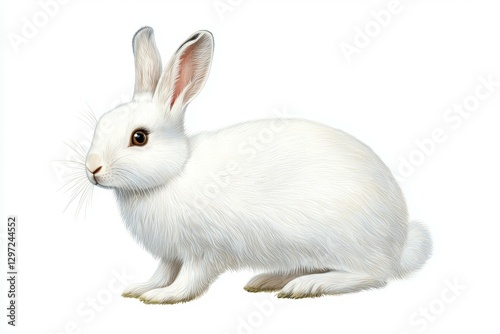 © Space Priest, Obraz premium White rabbit is sitting on a white background