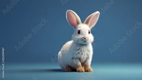 Obraz premium white rabbit on a blue background, Cute Easter bunny