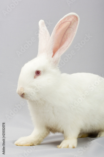 Obraz premium White rabbit on a gray background
