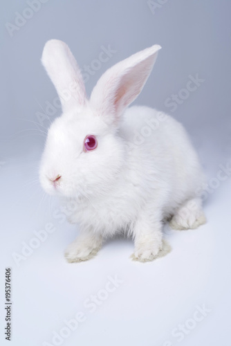 Obraz premium White rabbit on a light gray background.