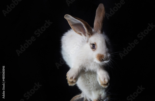 Obraz premium white rabbit on black background