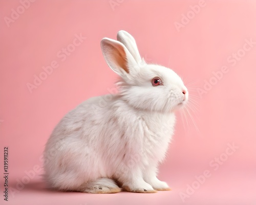 © mac, Obraz premium white rabbit on light pink background