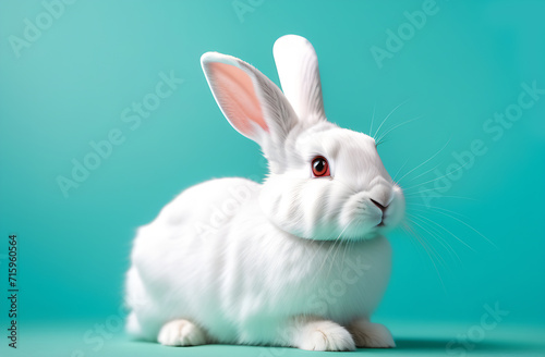 © iredman, Obraz premium white rabbit on mint background