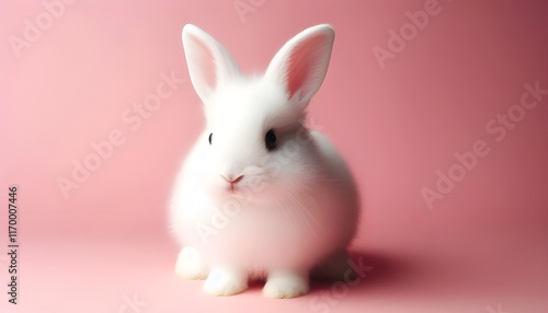 © Rohail iqbal, Obraz premium white rabbit on pink background