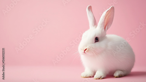Obraz premium white rabbit on pink background