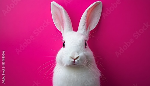 © Bima, Obraz premium White rabbit pink background, Easter