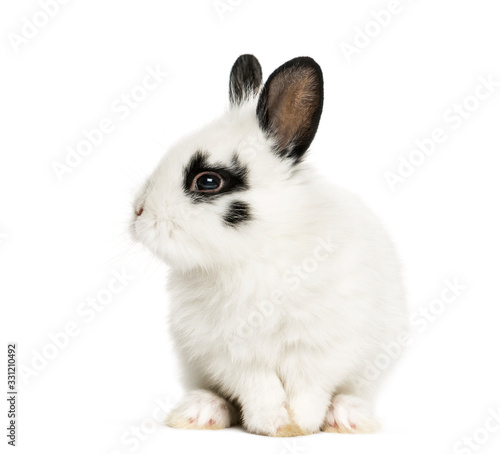 Obraz premium White rabbit sitting, isolated on white