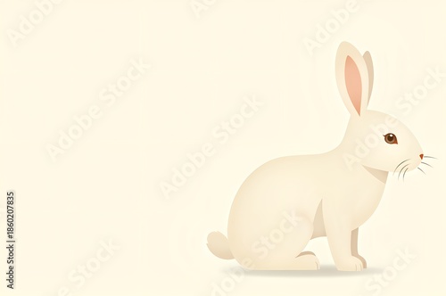 © Jalin, Obraz premium White Rabbit Sitting on Plain Background