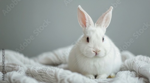 © olegganko, Obraz premium White Rabbit Sitting on Table