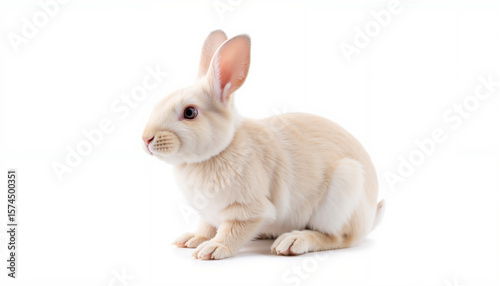 © Anastasia, Obraz premium White rabbit sitting on white background