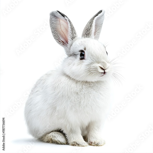 © ardanz, Obraz premium White rabbit sitting, studio shot, isolated background, Easter symbol
