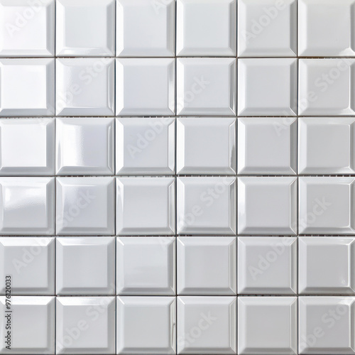 © nsit0108, Fototapeta premium White rectangular glossy tiles are forming a repetitive pattern on the wall