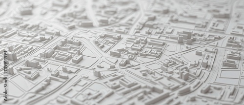 © Miftahul, Fototapeta premium White relief model of city buildings and streets.