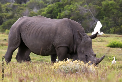 Obraz premium White Rhino and Egrets