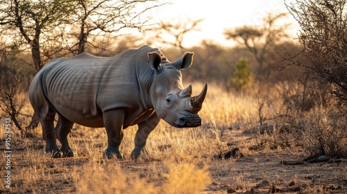 Fototapeta premium White Rhino at Sunset in African Savanna