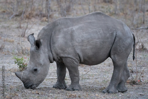 Naklejka premium White Rhino Calf (Ceratotherium simum) - Sabi Sands Game Reserve, South Africa