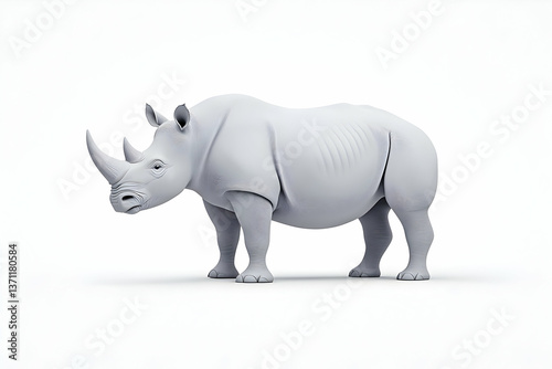 © RENDY, Fototapeta premium White rhino 3D model, side view, isolated on white