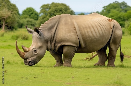 © MdHafizur, Obraz premium White Rhino grazing.