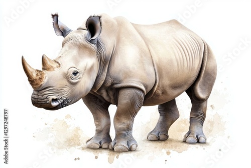 © Space Priest, Fototapeta premium White rhino with a horn on its head